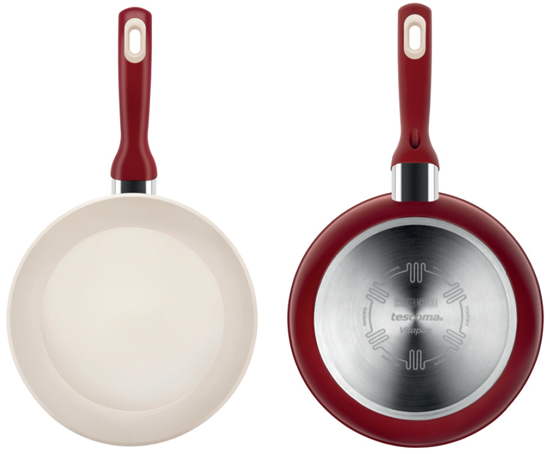 Rukojeť keramické pánve Vitapan Tescoma je opatřena protiskluzovou úpravou, pro bezpečnou a pohodlnou manipulaci. Pánev Vitapan hned na první pohled zaujme atraktivním designem kombinující matnou červenou a krémovou barvu.