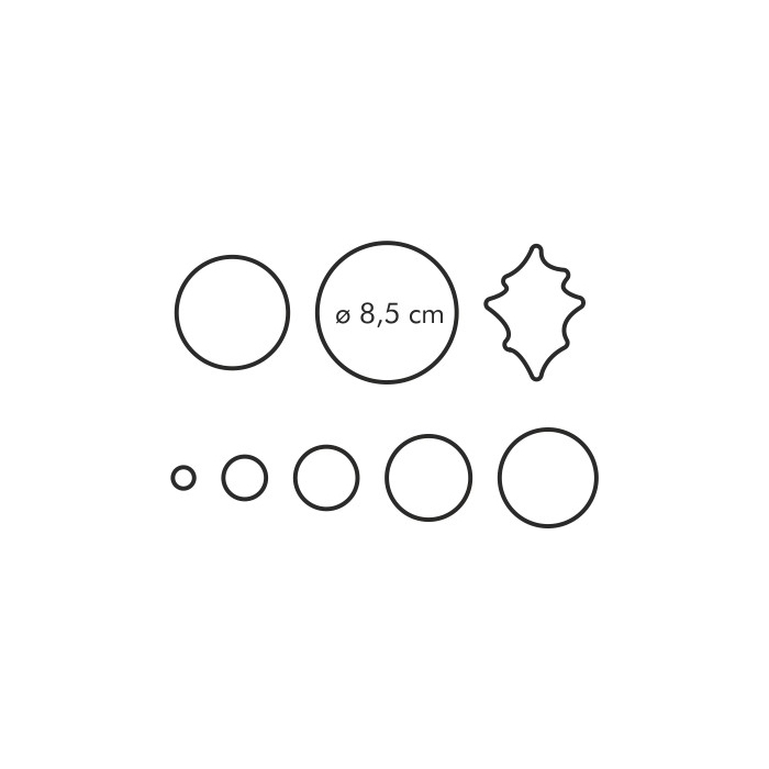 Souprava vykrajovátek vánoční zvoneček Delícia obsahuje: 7 vykrajovacích koleček různých velikostí a 1 vykrajovátko lístku cesmíny. Upečte si vánoční zvonečky sami doma, navodíte tím vánoční atmosféru a můžete je použít i jako ozdoby na vánoční stromeček.