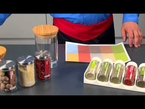 předtištěných štítků se všemi obvyklými druhy koření,